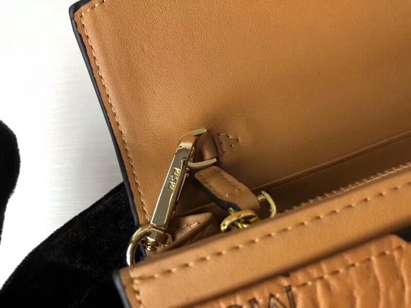MCM新款 铆钉链条包 可拆卸当钱包 全新PVC皮纹配高品质牛皮 土黄