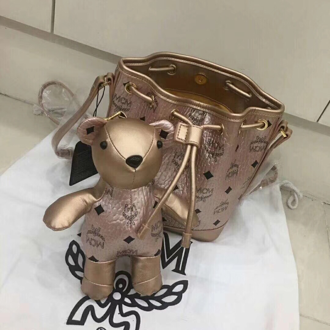 MCM韩国官网 VISETOS新品小熊系列摆件抽绳包 香槟金
