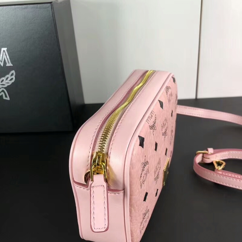 MCM 新款 相机包(冰激凌粉)选用Visetos印花涂层面料 精制而成 原单五金logo 时尚必备款 整个包的形状柔软度特别的完美