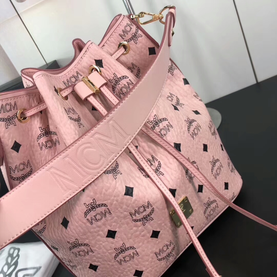 MCM Essentials 系列 19款抽绳水桶包(冰激凌粉)