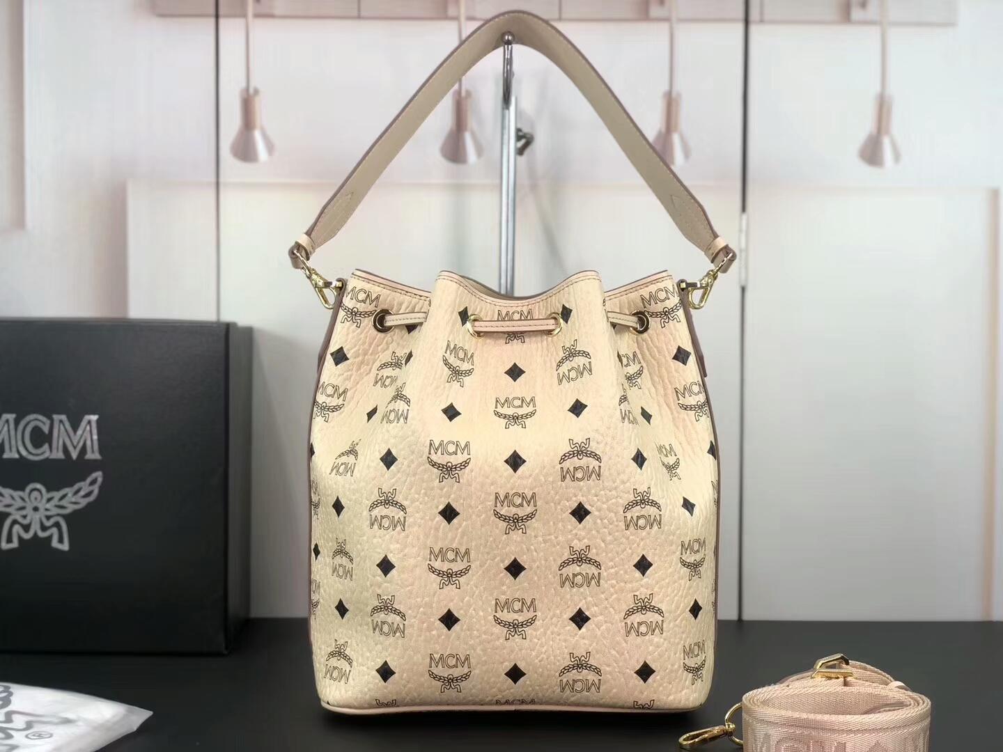 MCM Essentials 系列 19款抽绳水桶包(米白)