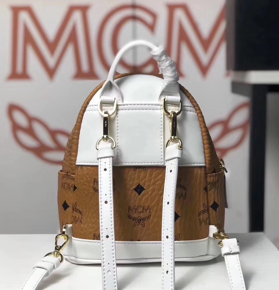 MCM 秋冬新款 x-mini 拼色双肩包(土黄/白色)可斜挎/单肩背/双肩背 简约上身百搭款