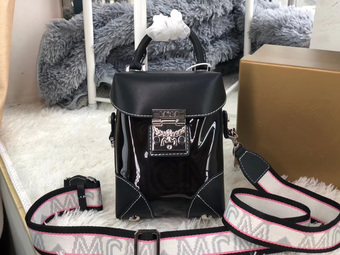 MCM 新款 斜挎包(黑色)重新赋予了半透明的外观,设计借鉴了MCM 传统硬质行李箱 其半透明的包身展示着包中物品的风采 使其成为一款具有大胆风格的配饰 内置手拿包 月桂叶锁扣闭合 可拆卸斜挎肩带 底部设计有金属保护支脚
