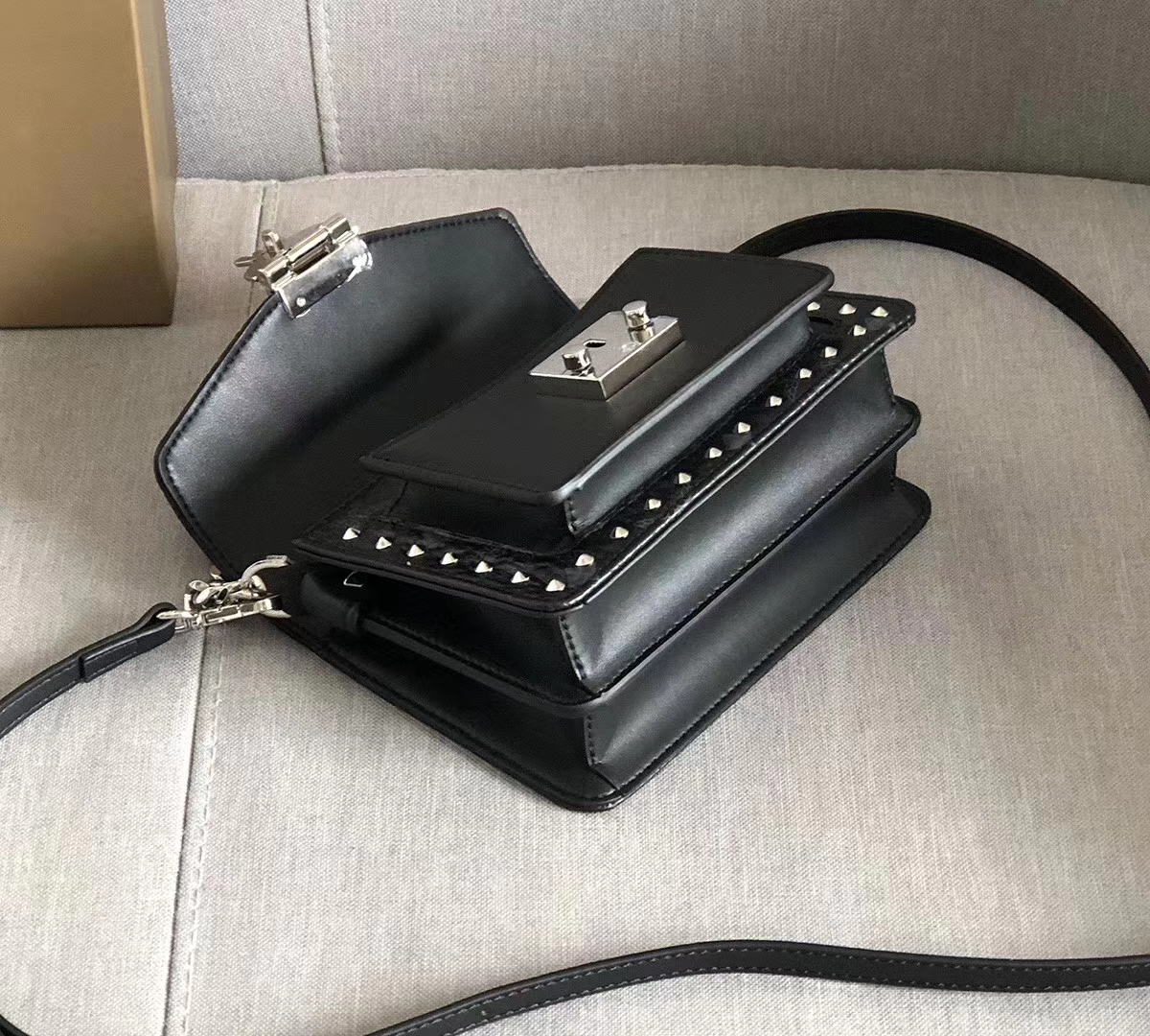 MCM Patricia mini 铆钉风琴斜挎包(黑色)采用经典Visetos制成,时尚别致,其前翻盖月桂叶锁扣设计彰显经典魅力,内部三个隔层方便您井井有条地存放物品,可拆卸肩带使其可手提亦可斜挎,释放双手自由。