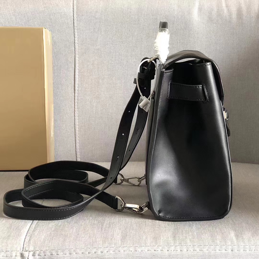 这款结构规整的双肩背包形似手提包,具有精致的细节,磁吸搭扣前翻盖闭合设计。您可搭配一条纤细的皮革肩带将其作为双肩背包佩戴,也可使用顶部提手将其作为手提包使用。