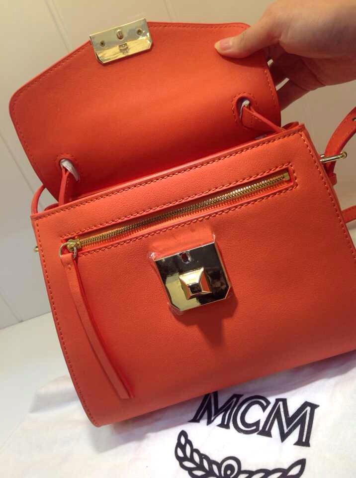 品牌:MCM;等级:原版皮;附件:身份卡,防尘袋;材质:原版头层牛皮;颜色:橙色;尺寸:20*22*10cm ;用途:手提包、单肩包
