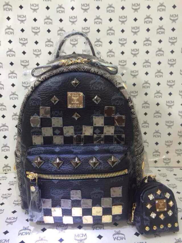 MCM厂价销售 小号四色方块款 新型双肩包 百搭潮流