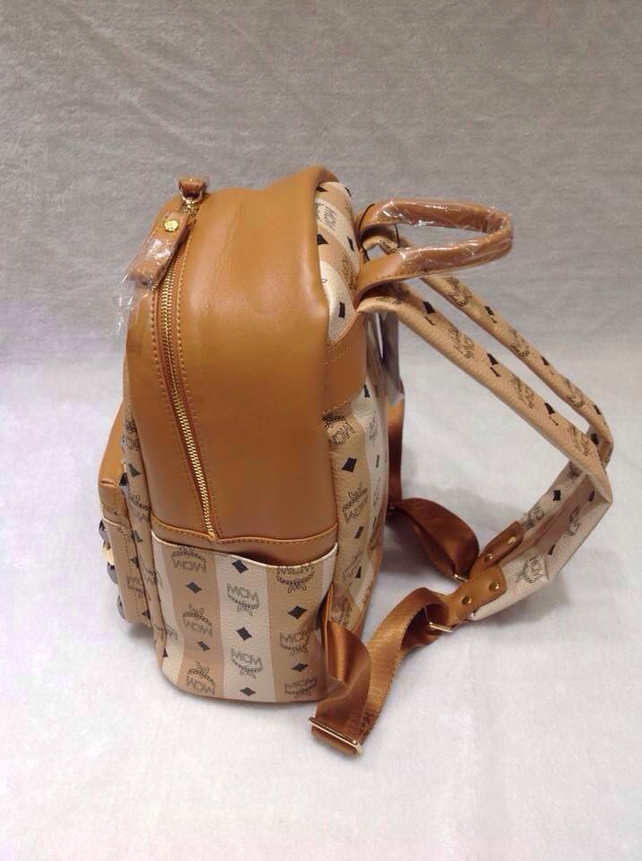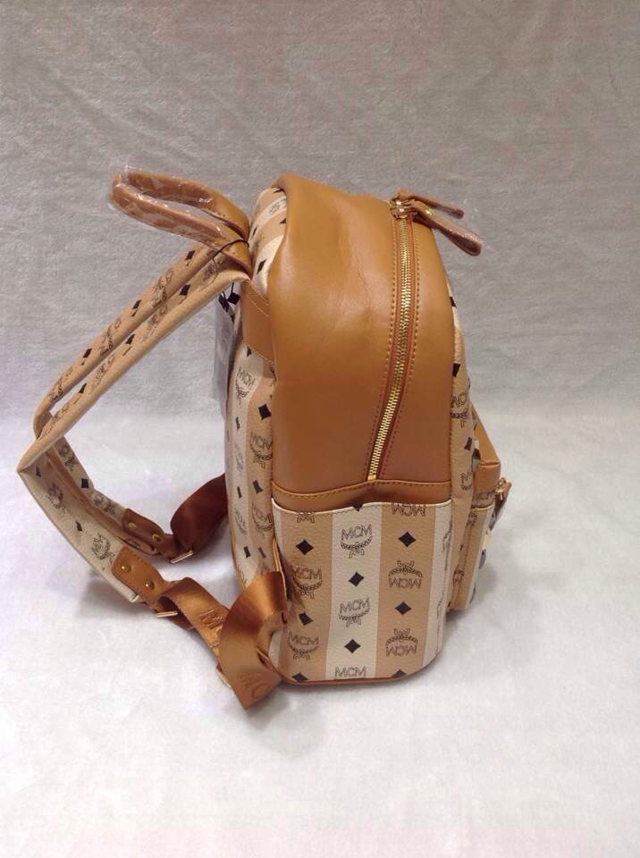 2015新款MCM背包 啡色顶级皮料 爆款经典包包 条纹双肩包