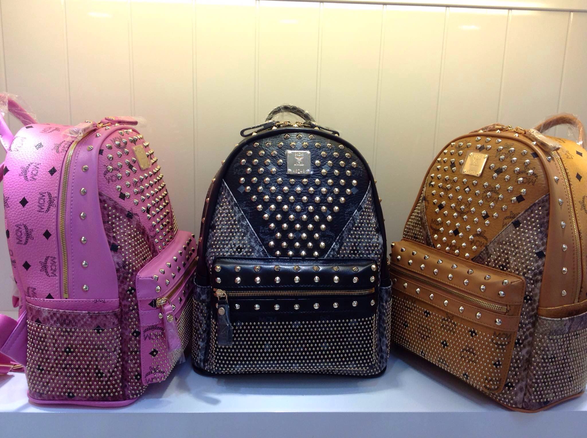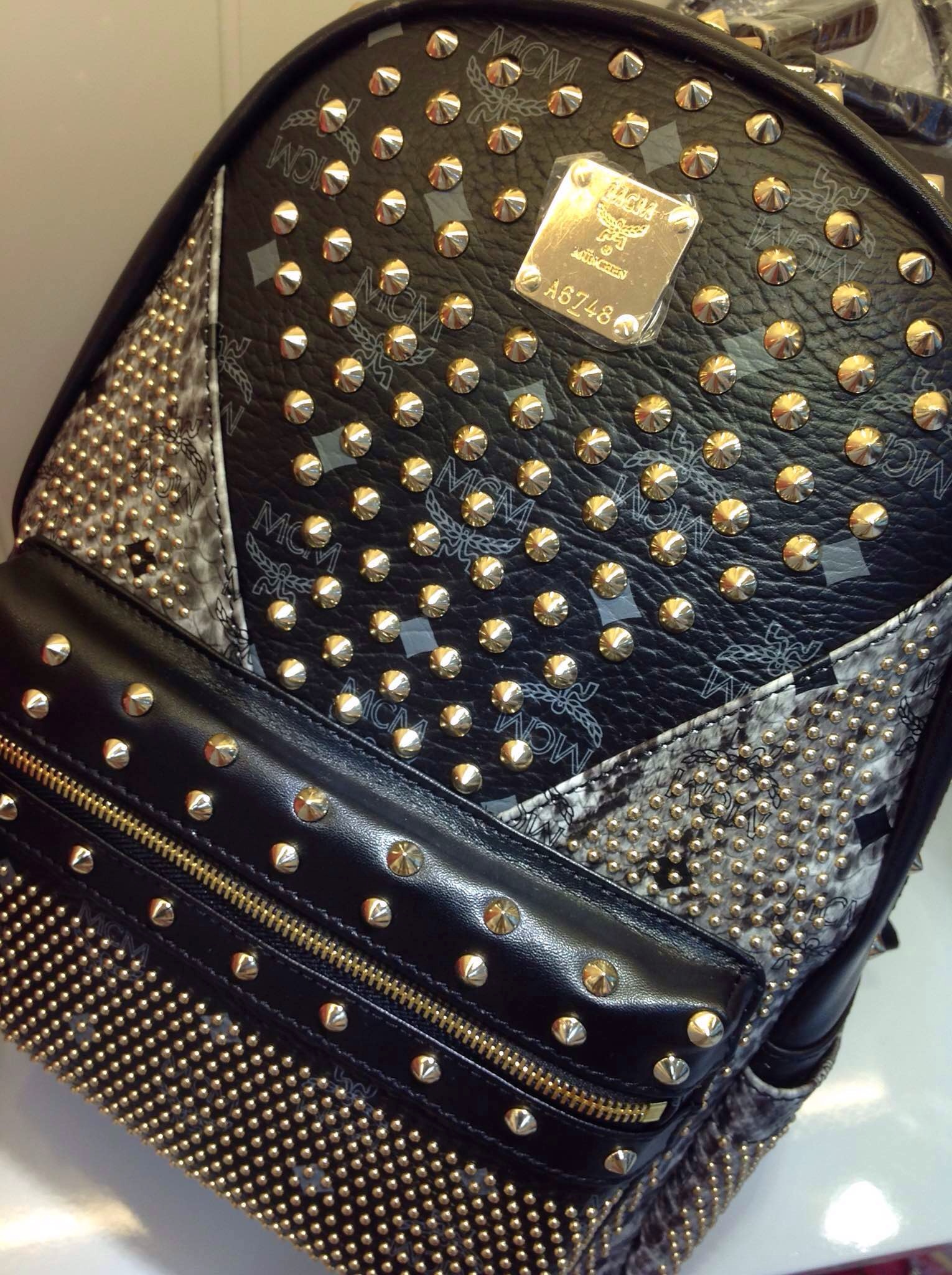 MCM包包批发网 铆钉拼蛇纹 多色 女士双肩包