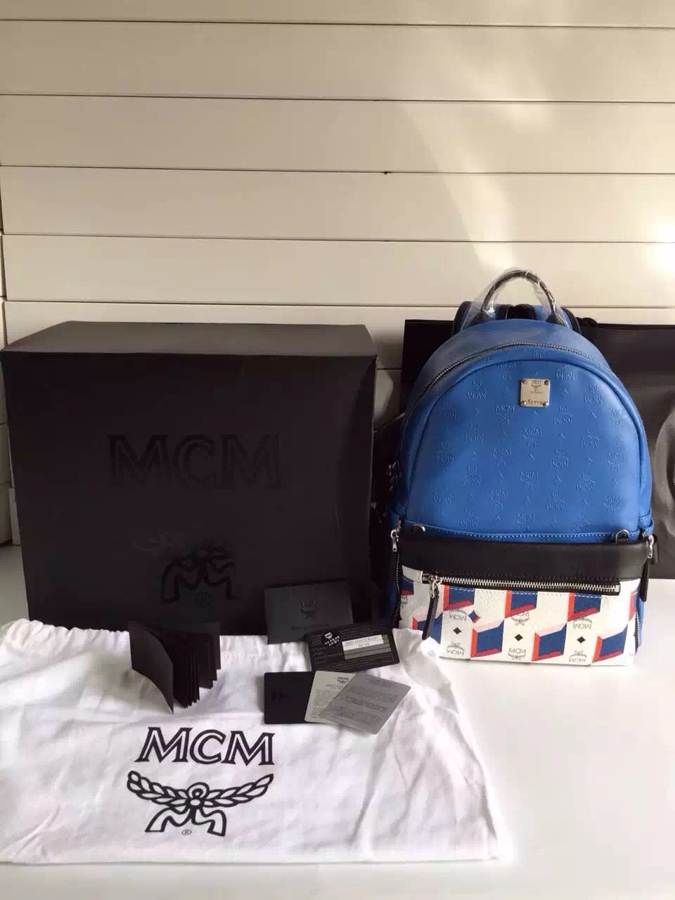 品牌:MCM;等级:原单;附件:全套包装;颜色:蓝色;尺寸:小号28*32*14,中号33*41*15cm ;用途:双肩包