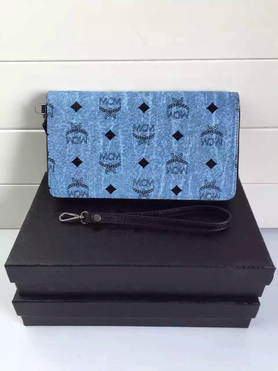 MCM原单 厂价直销 长款拉链钱夹手包 水洗蓝