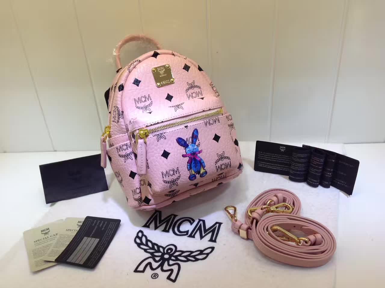 MCM韩国官网 超mini兔子背包 全新皮质纹理 内搭厚实耐用帆布 冰激凌粉