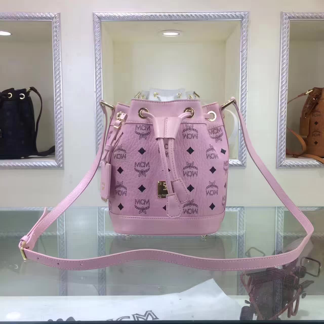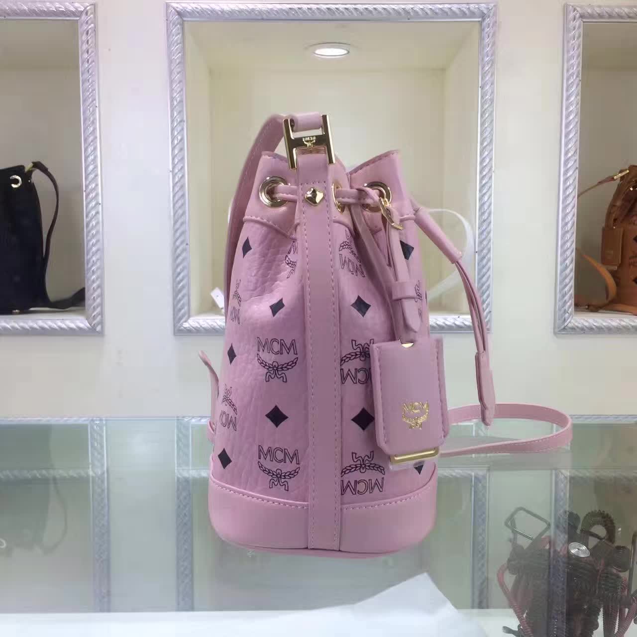 MCM2017新款 迷你单肩斜跨包水桶包 轻巧有型 时尚简约的抽绳设计 粉色