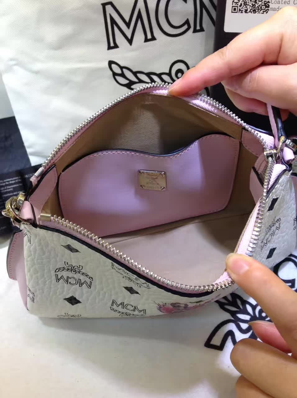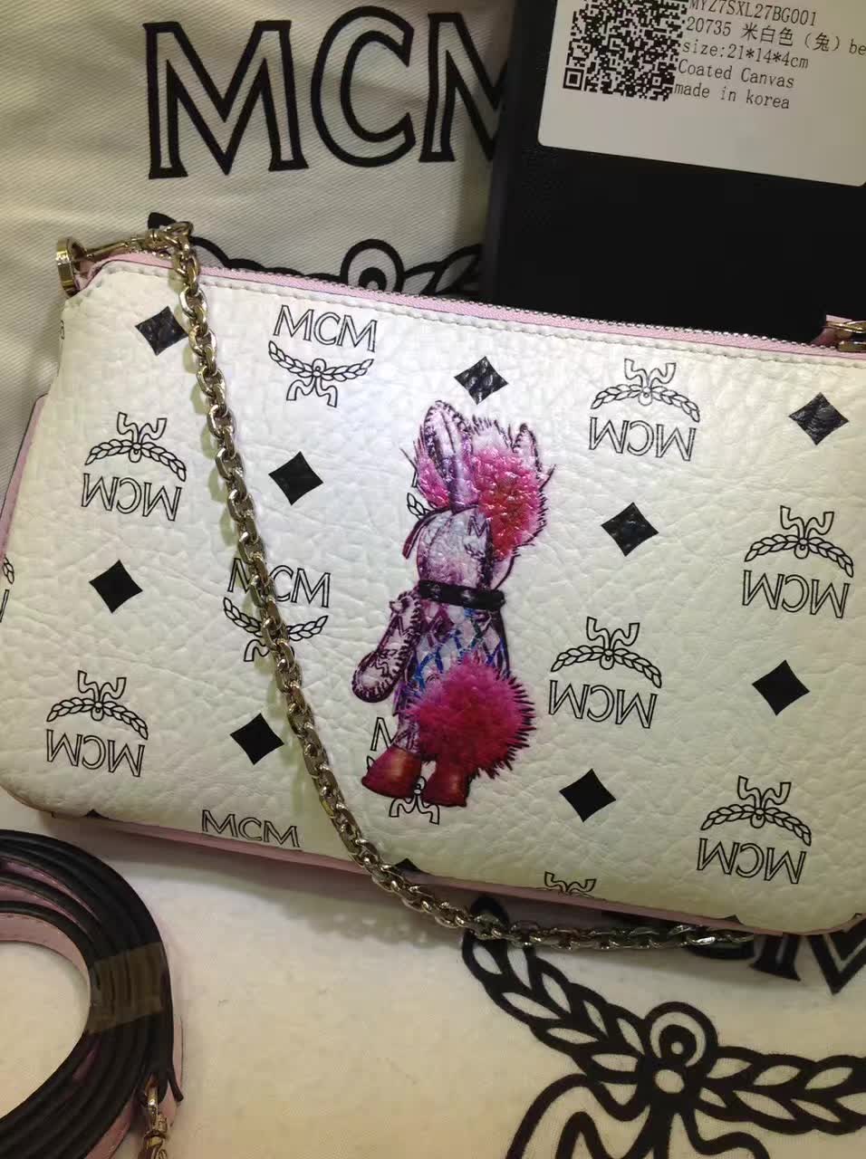 MCM专柜新款 链条斜挎两用包 新纹路PVC配高品质牛皮 绒布内里 白色