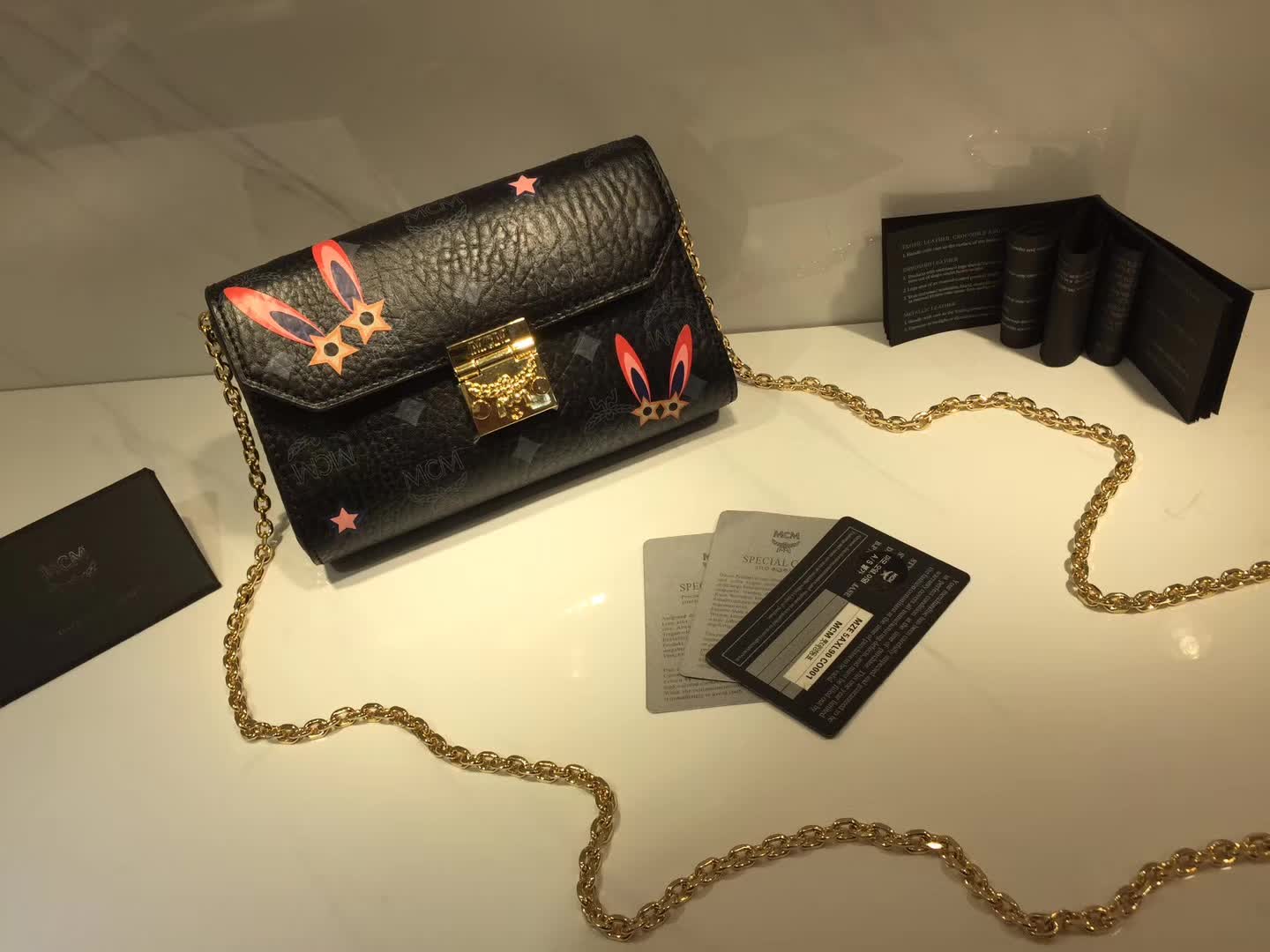 MCM韩国官网 Visetos Patricia兔耳图案链条包 简约优雅 黑色