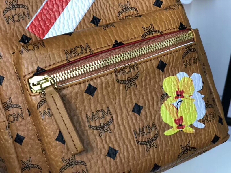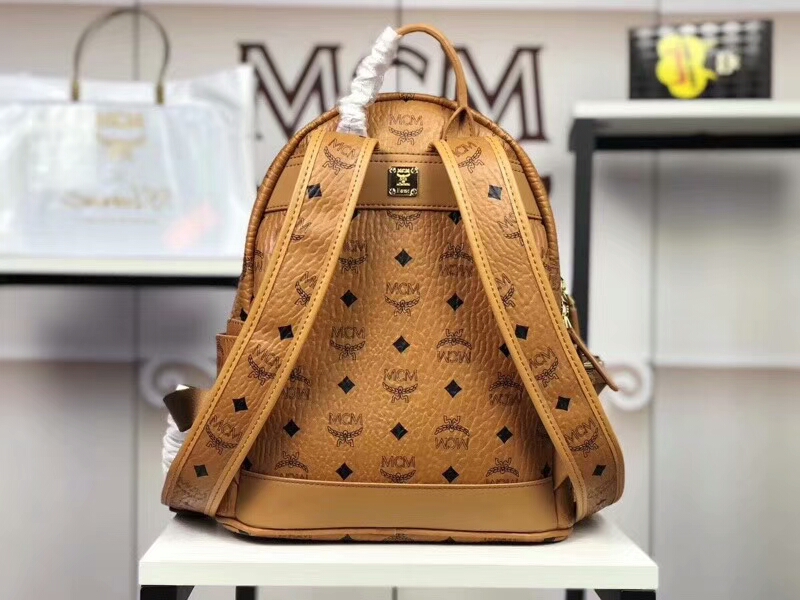 MCM专柜同步 Essentials系列双肩包3D丝印潮流元素 ykk拉链 背后附有铜牌独立编码 土黄