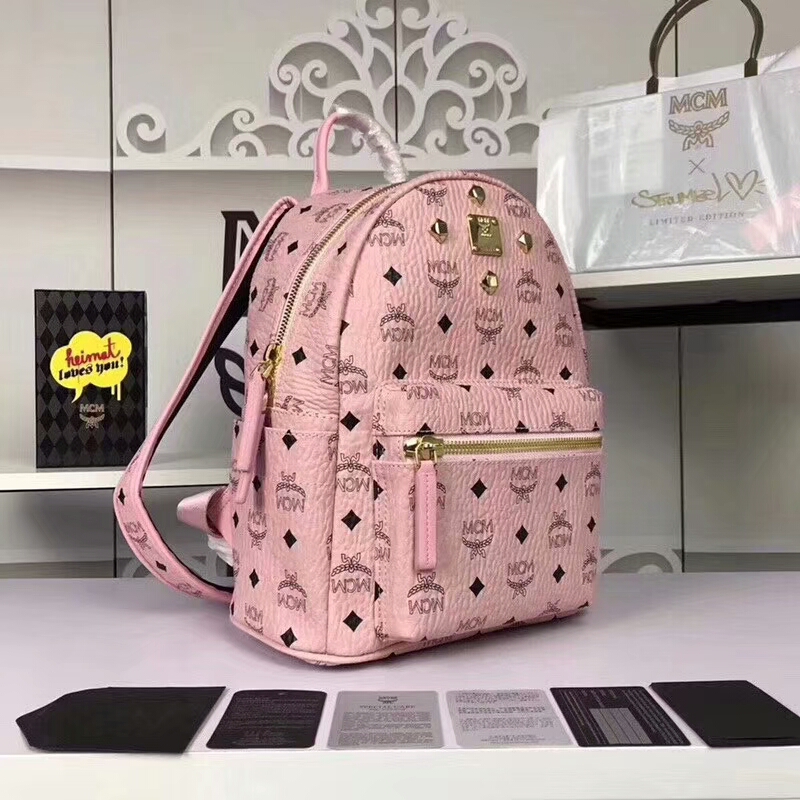MCM经典款 四钉全新多面体五金 透气肩带全皮内里 冰激凌粉