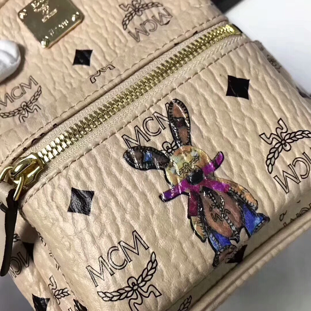 MCM兔子背包超迷你号 全新皮质纹理 内搭厚实耐用粗纹帆布 可斜跨可双肩背 米白