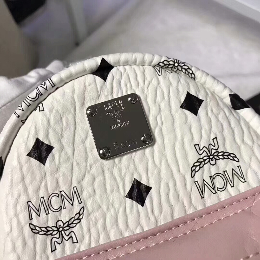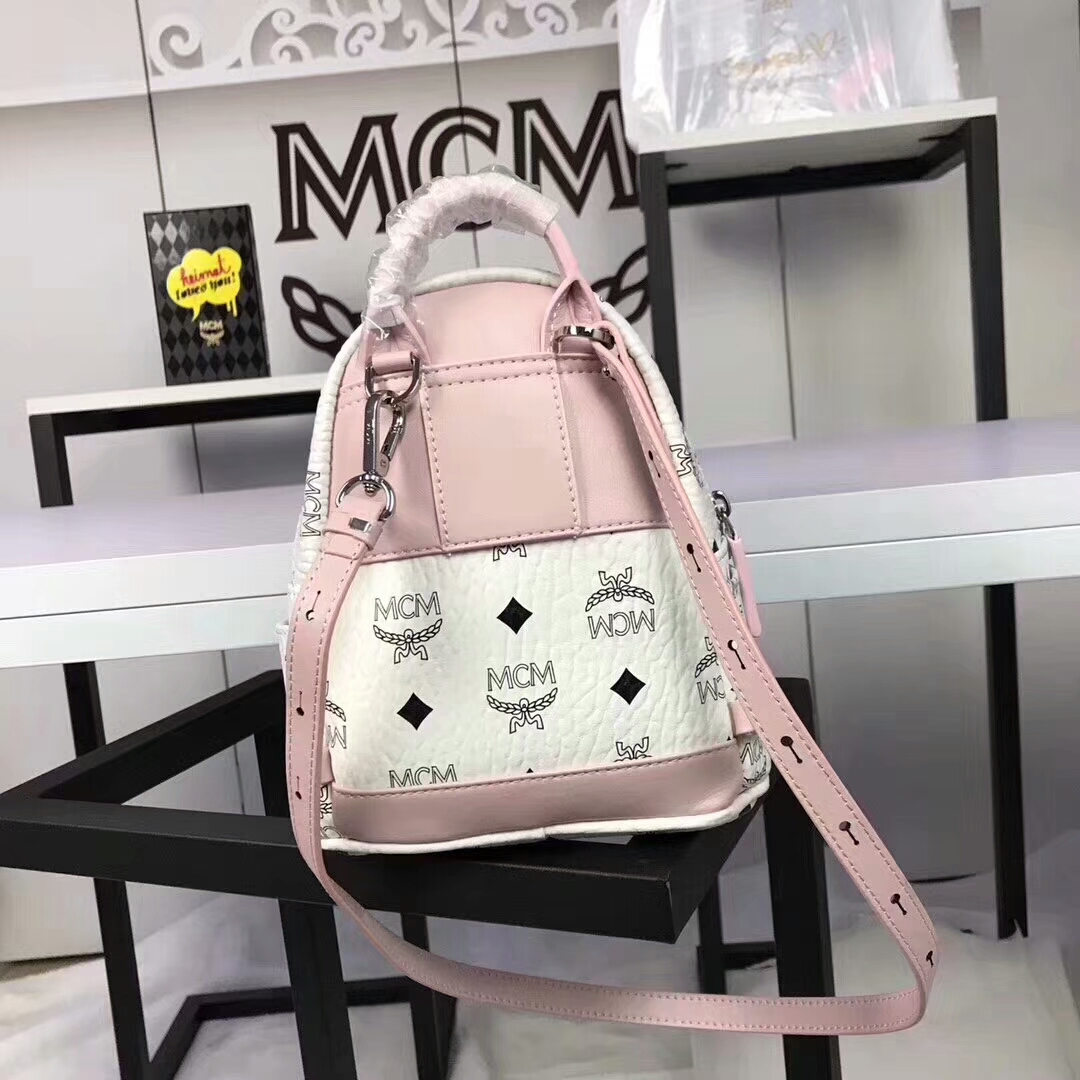 MCM兔子背包超迷你号 全新皮质纹理 内搭厚实耐用粗纹帆布 可斜跨可双肩背 白拼粉