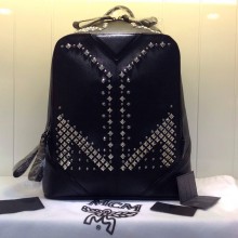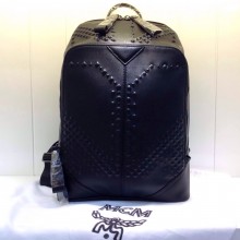 MCM 田亮款 黑色压纹 铅钉配银双肩包 PVC配牛皮中号