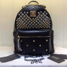 2015专柜满钉款 MCM黑色 中号女士双肩包 高档包包批发