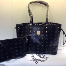 广州货源 MCM专柜新款 正反两用子母购物袋 黑色