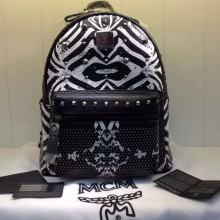 MCM新款 王菲款 虎纹反光皮 中号双肩包批发