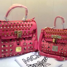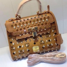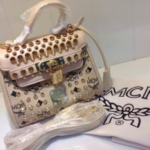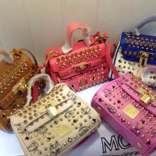 广州包包批发 MCM真皮手提包 多色钉钉小提包 时尚百搭拿包