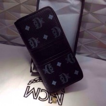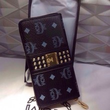 MCM官网 原版皮钱包 黑色真皮钱夹 柳钉拉链