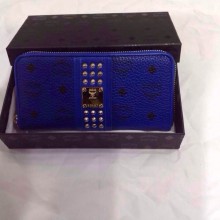 诚招代理 MCM电音蓝钱夹 拉链柳钉钱包 真皮实拍