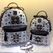 MCM金典四钉水钻 时尚经典双肩包 柳钉真皮拉链