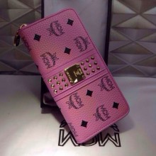 诚招代理 MCM粉色钱夹 真皮柳钉包 拉链柳钉钱包
