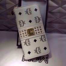 MCM原版皮钱包 白色钱夹 柳钉拉链