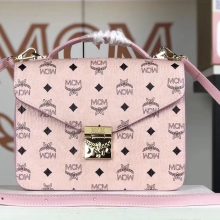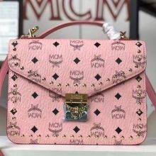 MCM Patricia 全皮压花风琴包 经典设计元素 空间充裕 翻盖式搭配月桂锁按扣 粉色