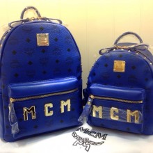 MCM官网 大号宝蓝色双肩包 大LOGO款包包