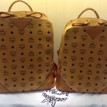 广州包包批发市场 MCM大号 大LOGO款土黄色双肩包