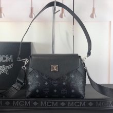 MCM 19款经典Viseto印花Essential斜挎包 经典印花涂层帆布配原版牛皮革 黑色