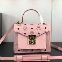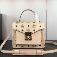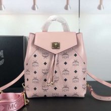 MCM19款经典Viseto印花Essential翻盖多用单双肩包 经典印花PVC配牛皮革制成 冰激凌粉
