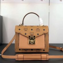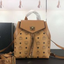 MCM19款经典Viseto印花Essential翻盖多用单双肩包 经典印花PVC配牛皮革制成 土黄