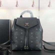 MCM19款经典Viseto印花Essential翻盖多用单双肩包 经典印花PVC配牛皮革制成 黑色