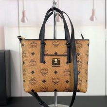 MCM2019新品 Anya Visetos顶部拉链mini购物袋 经典logo印花配PVC帆布底面料 土黄