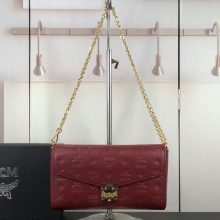 MCM Millie 19款 压花链条包 采用独特的粒面字母组合图案 上等的头层牛皮 酒红