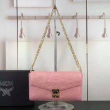 MCM Millie 19款 压花链条包 采用独特的粒面字母组合图案 上等的头层牛皮 冰激凌粉