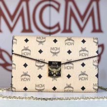 MCM Patricia系列 斜挎包单肩包折叠翻盖钱包 采用涂层帆布制成 风琴式隔层 米白