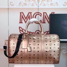 MCM包包批发 Traveler Visetos周末旅行包 耐用的Visetos印花涂层帆布与粘合衬里制成 香槟金