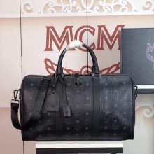 MCM包包批发 Traveler Visetos周末旅行包 耐用的Visetos印花涂层帆布与粘合衬里制成 黑色