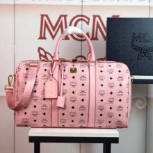 MCM包包批发 Traveler Visetos周末旅行包 耐用的Visetos印花涂层帆布与粘合衬里制成 冰激凌粉