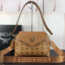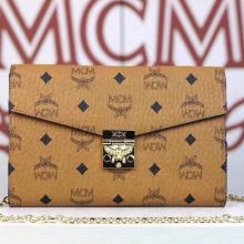 MCM Patricia系列 斜挎包单肩包折叠翻盖钱包 采用涂层帆布制成 风琴式隔层 土黄