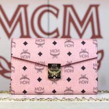 MCM Patricia系列 斜挎包单肩包折叠翻盖钱包 采用涂层帆布制成 风琴式隔层 冰激凌粉