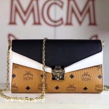 MCM Mille系列双皮盖链条包 翻盖设计 经典Visetos图案材质组合及色块皮革 土黄拼黑